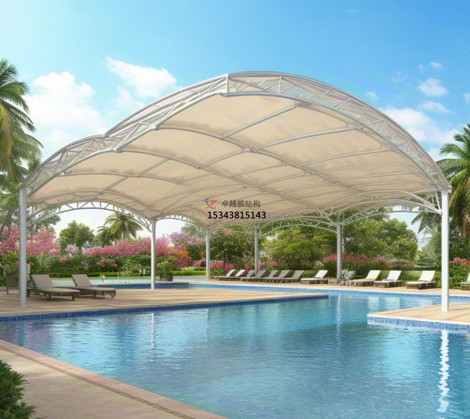 從景觀裝飾角度看,泳池膜結構獨特的造型和輕盈的質感,使其成為城市景觀設計中的重要元素。無論是在公園、廣場,還是在商業(yè)綜合體的露天泳池,膜結構都能與周圍環(huán)境相互映襯,增添城市的藝術氛圍和活力。