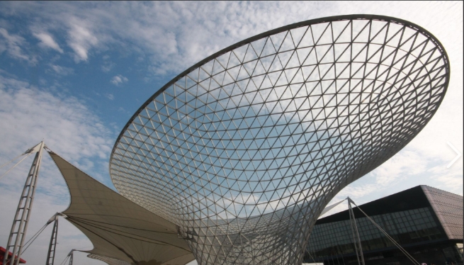 索膜結(jié)構(gòu)建筑是一種以高強(qiáng)度柔性薄膜材料(膜材)與張力支撐系統(tǒng)(鋼索、桅桿、框架等)結(jié)合形成的空間結(jié)構(gòu)體系,兼具藝術(shù)性與技術(shù)性。其建筑組成是用高強(qiáng)度柔性薄膜材料經(jīng)受其它材料的拉壓作用而形成的穩(wěn)定曲面,基本組成單元通常有膜材、索與支承結(jié)構(gòu)。通過(guò)張拉索和膜材相互作用形成預(yù)應(yīng)力狀態(tài),使結(jié)構(gòu)具有輕質(zhì)、高強(qiáng)度的特點(diǎn),能承受一定外荷載。其核心特點(diǎn)是利用預(yù)張應(yīng)力塑造穩(wěn)定曲面,實(shí)現(xiàn)傳統(tǒng)建筑難以企及的大跨度無(wú)柱空間。