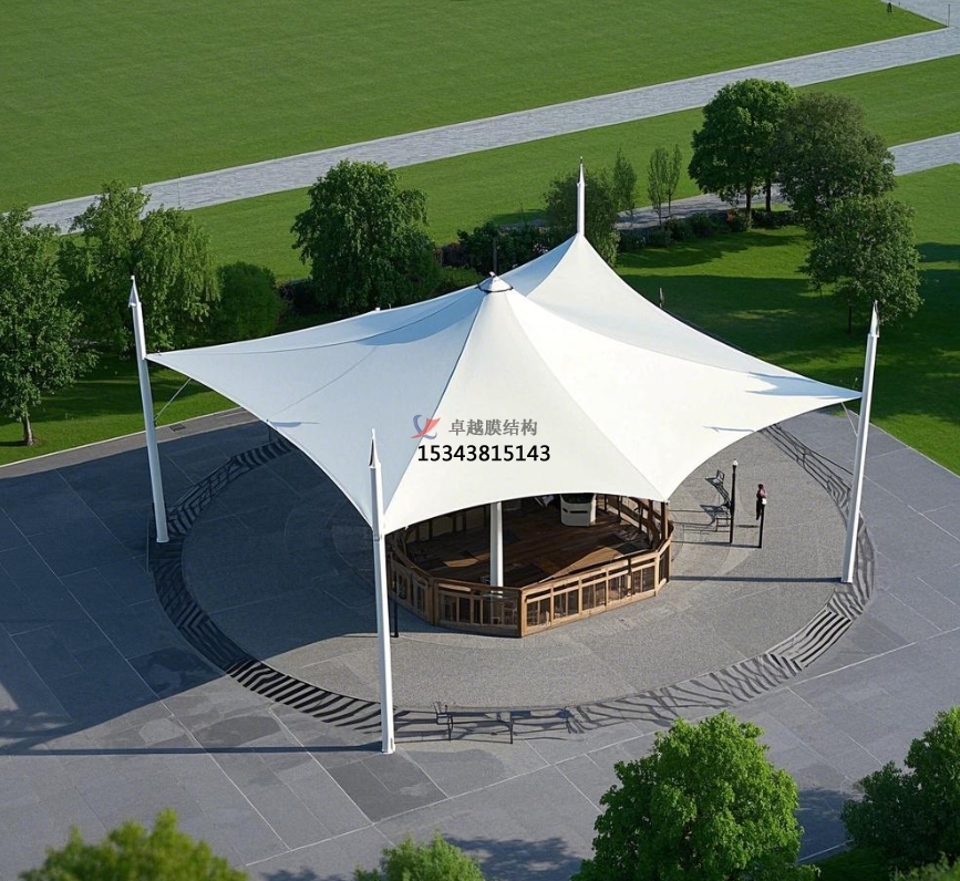 膜結(jié)構(gòu)景觀亭放置在公園的開闊草坪、花壇中央等顯眼位置,成為公園的標志性景觀。其多樣的造型,如傘狀、蘑菇狀、飛鳥狀等,吸引著游客的目光,成為公園的視覺焦點。亭內(nèi)設(shè)置的座椅、茶幾等休閑設(shè)施,供游客休息、交談,部分景觀亭配備的照明設(shè)備,在夜間亮起,將景觀亭裝點得格外美麗,成為公園亮化景觀的一部分,為公園增添浪漫氛圍。
