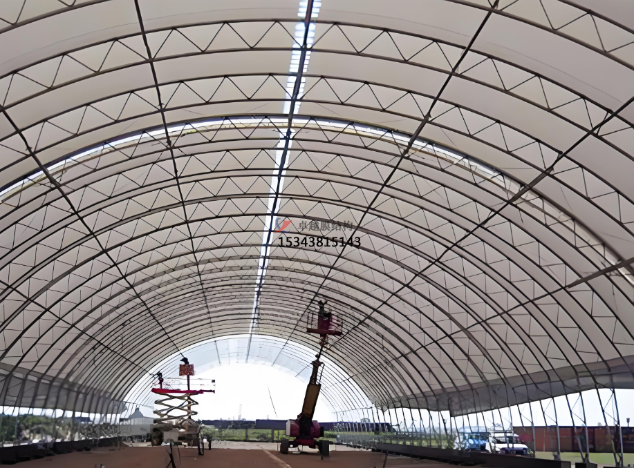 膜結(jié)構(gòu)在不同類型的煤場(chǎng)均有廣泛應(yīng)用。在煤礦儲(chǔ)運(yùn)中,封閉式煤場(chǎng)膜結(jié)構(gòu)告別了粉塵污染,提升了礦區(qū)形象,保障了煤炭資源的儲(chǔ)存安全。火電廠儲(chǔ)煤采用膜結(jié)構(gòu),可有效防自燃、防損耗,保障能源供應(yīng)穩(wěn)定。物流園區(qū)的煤場(chǎng)使用膜結(jié)構(gòu),能實(shí)現(xiàn)全天候倉(cāng)儲(chǔ),抵御雨雪侵蝕,降低煤炭熱值損失。港口碼頭由于需要快速周轉(zhuǎn)大宗煤炭,膜結(jié)構(gòu)的快速搭建和靈活擴(kuò)容特性,使其成為理想選擇 。
