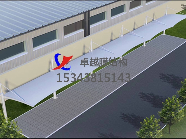 膜結(jié)構(gòu)車棚PVC材料的主要特點(diǎn)是強(qiáng)度低、彈性大、易老化、徐變大、自潔性差,但價(jià)格便宜,容易加工制作,色彩豐富,抗折疊性能好。為改善其性能,可在膜結(jié)構(gòu)車棚表面涂一e799bee5baa6e997aee7ad94e4b893e5b19e31333433626562層聚四氟乙烯涂層,提高其抗老化和自潔能力,其壽命可達(dá)到15年左右。