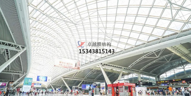 作為華南地區(qū)最繁忙的高鐵站,廣州南站的“高顏值”備受旅客喜愛~其屋頂設(shè)計(jì)獨(dú)特,除了傳統(tǒng)的采光玻璃外還使用了高分子透光膜(透明ETFE膜材).