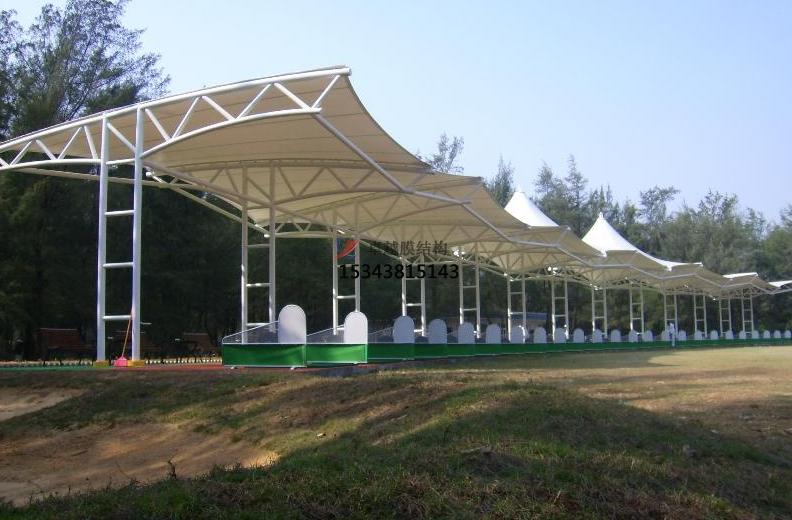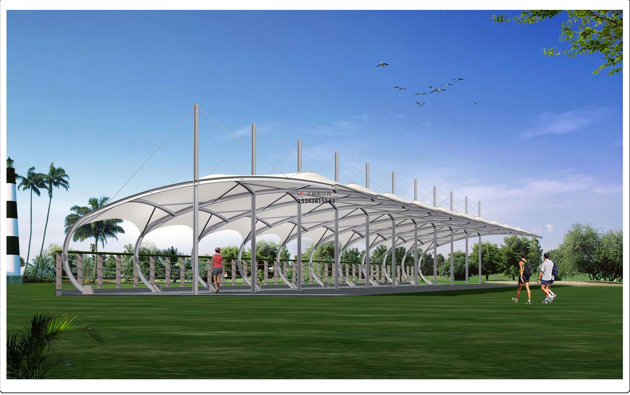 高爾夫球場綠草如茵青山環(huán)繞的整體環(huán)境,時(shí)尚又環(huán)保的配套設(shè)施才能更加提升其高貴品質(zhì)。膜結(jié)構(gòu)因適用廣,技術(shù)性及藝術(shù)性兼?zhèn)?,用來建設(shè)高爾夫球場發(fā)球臺(tái)再合適不過,潔白的膜材及獨(dú)特的造型搭配,此外,因張拉膜具有自重輕的特性,使其外表看起來輕盈簡約,讓前來運(yùn)動(dòng)的人們耳目一新,卸下平日工作壓力帶來的那份沉重,盡情享受身體與心靈的放松,何樂而不為呢?