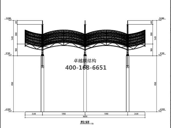 我公司設(shè)計(jì)人員的周口盛和小學(xué)膜結(jié)構(gòu)看臺/頂棚工程設(shè)計(jì)方案得到甲方確認(rèn),部分設(shè)計(jì)圖紙如下:
