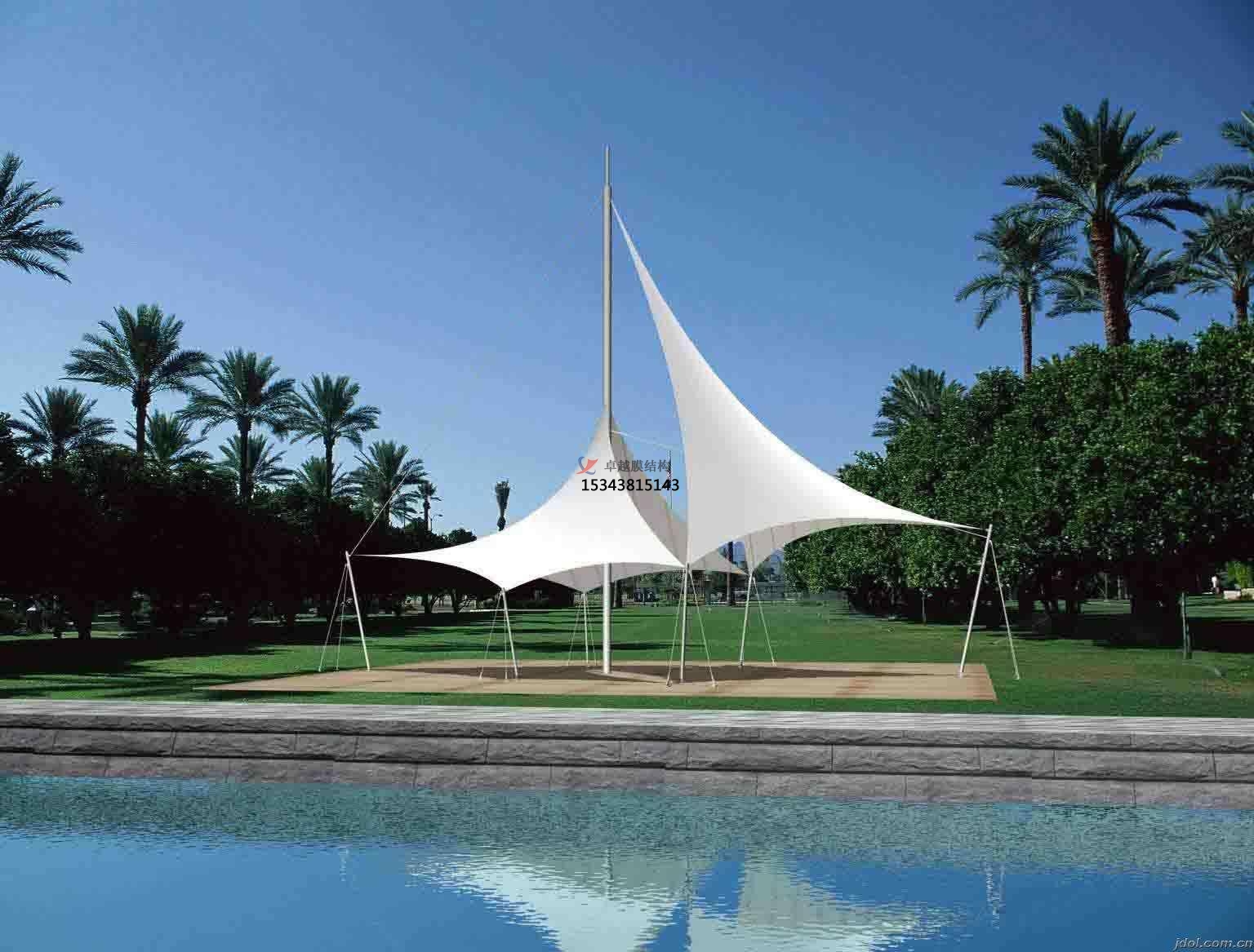4、防火 :膜材料完全滿足防火規(guī)范的要求,因此在高度和間隙度允許下,膜結(jié)構(gòu)景觀適合于任何一種建筑,通常自動(dòng)滅火系統(tǒng)對(duì)膜材料是適合的,防火設(shè)計(jì)時(shí)應(yīng)從總體考慮。