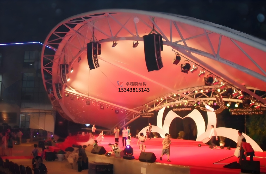 在設計膜結(jié)構舞臺時,首要任務是深入理解演出主題與風格。從色彩、造型到整體氛圍營造,都應圍繞主題展開。若是一場古典音樂會,膜結(jié)構舞臺可采用簡潔、優(yōu)雅的白色調(diào),搭配流暢的線條,營造出莊重、典雅的氛圍;而對于現(xiàn)代藝術展的舞臺,則可以運用大膽的色彩和前衛(wèi)的造型,展現(xiàn)出創(chuàng)新與活力。通過精準的設計,膜結(jié)構舞臺成為演出主題的視覺延伸,強化藝術表達。