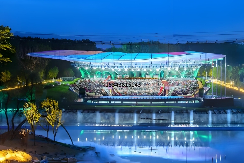 傳統(tǒng)舞臺多以方正、規(guī)則的造型示人,而膜結(jié)構舞臺則打破了這種局限。通過巧妙的設計與張拉技術,膜結(jié)構能夠塑造出如波浪般起伏、似云朵般飄逸,甚至是極具未來感的不規(guī)則造型。這些獨特的形態(tài)可以與演出主題緊密契合,無論是浪漫的音樂劇、激情的搖滾演唱會,還是充滿奇幻色彩的兒童劇,膜結(jié)構舞臺都能營造出與之相匹配的夢幻氛圍。例如,在一場以海洋為主題的演出中,膜結(jié)構舞臺可以設計成海浪翻涌的形狀,觀眾仿佛置身于波濤洶涌的海邊,沉浸式感受演出魅力。