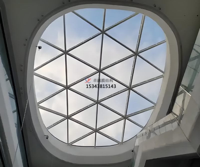 ETFE(乙烯 - 四氟乙烯共聚物)膜作為一種革命性的建筑材料,憑借其獨特的性能在現(xiàn)代建筑中占據(jù)重要地位。其密度僅為玻璃的 1%,卻擁有高達 500N/5cm 的拉伸強度,能夠顯著降低建筑主體結(jié)構(gòu)荷載,尤其適合大跨度空間。透光率高達 95% 的特性使其成為自然光利用的理想選擇,配合絲網(wǎng)印刷技術(shù)可靈活調(diào)節(jié)遮陽與采光比例。此外,ETFE 膜的耐候性極強,可在 - 200℃至 150℃的極端環(huán)境中穩(wěn)定服役,使用壽命超過 25 年,且具備自清潔功能,減少維護成本。