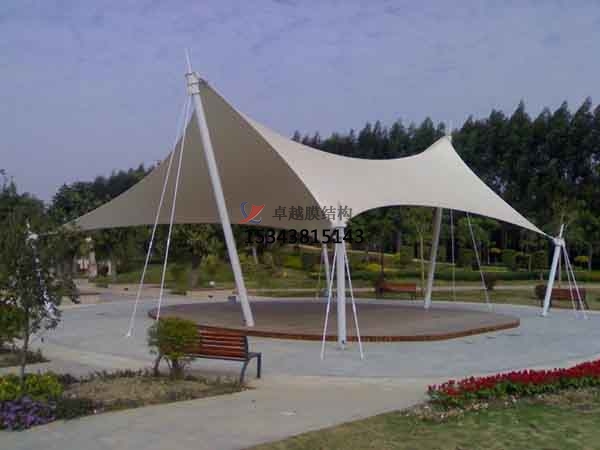 2、景觀膜結(jié)構(gòu)是目前發(fā)展很快的一種新型空間結(jié)構(gòu),是一種效率極高的張力集成體系,可以充分發(fā)揮鋼索的強(qiáng)度與張拉整體結(jié)構(gòu)的空間作用。它通過鋼骨架、鋼索與膜材共同受力形式穩(wěn)定曲面來覆蓋建筑空間,具有高度的形體可塑性和結(jié)構(gòu)靈活性,即通過對膜材內(nèi)部施加一定的預(yù)張力,使其具備了抵抗外荷載能力,從而充當(dāng)結(jié)構(gòu)材料的一種結(jié)構(gòu)體系。我公司先后在貴港地區(qū)承接了貴港園博園景觀、貴港新世紀(jì)廣場景觀、貴港萬達(dá)廣場景觀小品的設(shè)計施工,簡介如下: