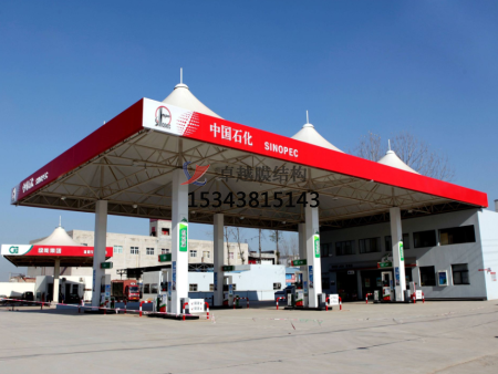 該加油站的拉膜結構采用了高強度聚酯纖維材料,具有輕質、耐腐蝕、抗紫外線等特點。膜結構的外表面采用了特殊的防水涂層,能夠有效地防止雨水侵入。此外,膜結構內部采用了高強度鋼材,保證了建筑的安全穩(wěn)定。