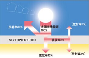 Skytop對太陽光的反射性率高、吸收率低。能抑制太陽熱能侵入建筑物內。另外,由于材料半透明,所以白天不需要人工照