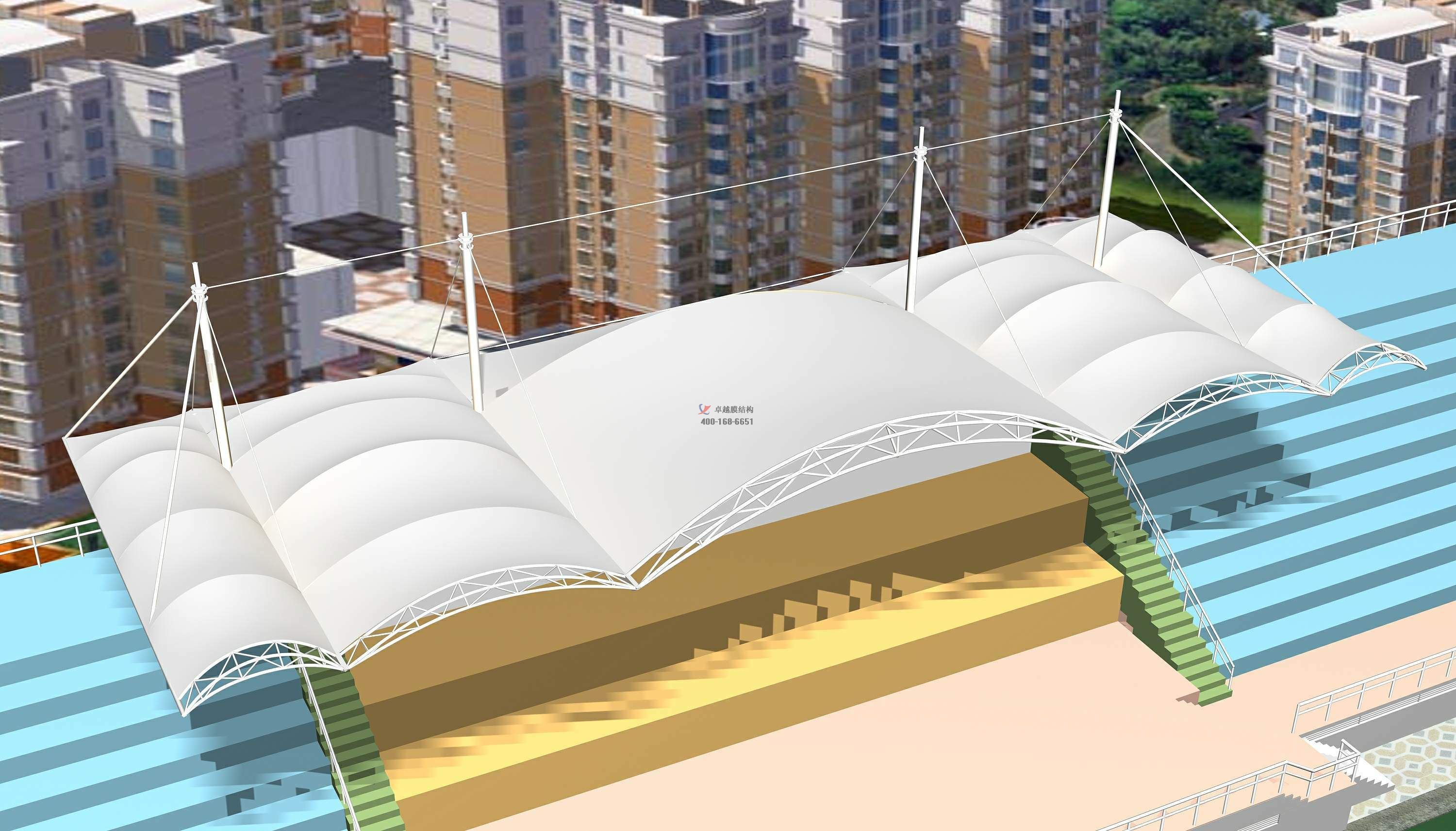 卓越擁有看臺膜結(jié)構(gòu)設(shè)計一級資質(zhì)、膜結(jié)構(gòu)制作二級資質(zhì),膜結(jié)構(gòu)安裝二級資質(zhì),鋼結(jié)構(gòu)專業(yè)承包三級資質(zhì)。立足鄭州服務(wù)全國,完工案例上千項,遍布全國各地。專業(yè)設(shè)計團隊,一級結(jié)構(gòu)工程師領(lǐng)銜,所有項目均經(jīng)專業(yè)結(jié)構(gòu)計算軟件計算滿足,保證質(zhì)量,保證結(jié)構(gòu)安全,歡迎來電咨詢采購,聯(lián)系電話:17698102388,期待為您服務(wù)。