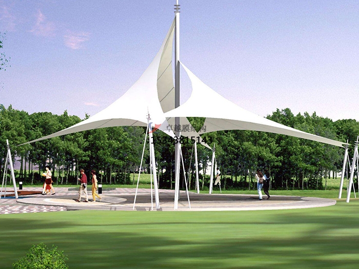從結(jié)構(gòu)上分可分為:骨架式張拉膜景觀,張拉式張拉膜景觀,充氣式張拉膜景觀3種形式。