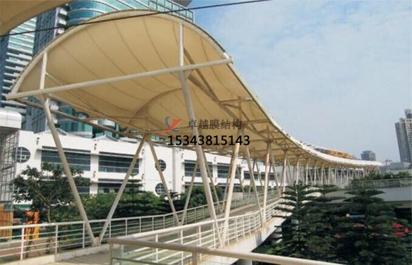 以膜材、鋼索及支柱構(gòu)成,利用鋼索與支柱在膜材中導(dǎo)入張力以達(dá)安 定的形式。除了可實(shí)踐具創(chuàng)意,創(chuàng)新且美觀的造型外,也是能展現(xiàn)膜結(jié) 構(gòu)精神的構(gòu)造形式. 大型跨距空間也多采用以鋼索與壓縮材構(gòu)成鋼索網(wǎng)來(lái)支撐上部膜材的形式。因施工精度要求高,結(jié)構(gòu)性能強(qiáng),且具豐 富的表現(xiàn)力,所以造價(jià)略高于骨架式膜結(jié)構(gòu)景觀。