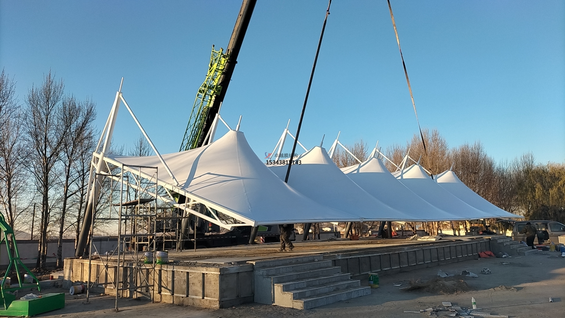 :依據(jù)設(shè)計(jì)圖紙,精確調(diào)整膜材位置,確保與支撐結(jié)構(gòu)準(zhǔn)確連接,保證膜面平整、受力均勻。