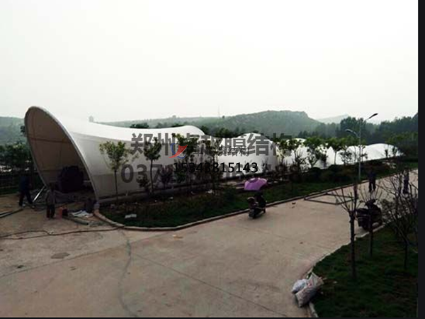 膜結(jié)構(gòu)具有結(jié)構(gòu)輕、透光好、強(qiáng)度大、高自潔性、防火B(yǎng)1級(jí)、節(jié)能環(huán)保等優(yōu)點(diǎn),其經(jīng)過(guò)高度的專業(yè)加工工藝和嚴(yán)格的施工規(guī)程,使得膜結(jié)構(gòu)又具備耐久性及隔離紫外線強(qiáng)的特點(diǎn)。它多運(yùn)用于停車棚、收費(fèi)站、 體育場(chǎng)、看臺(tái)、加油站等地方。