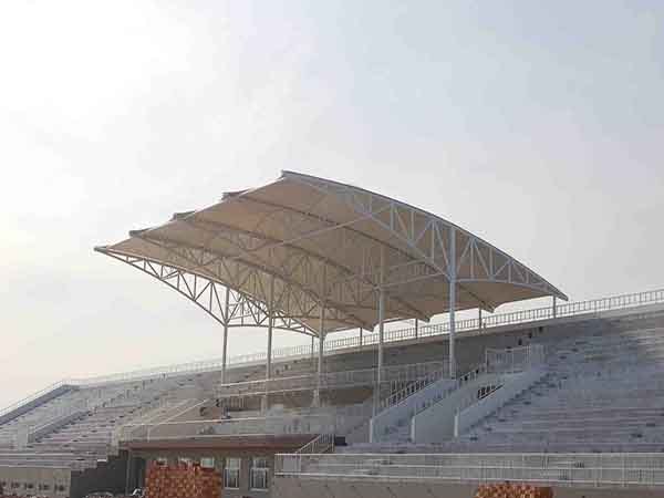 張拉膜看臺主要用于各類地方體育場主席臺雨棚,各類學(xué)校體育場看臺雨棚遮蓋,我公司是國內(nèi)較早從事大懸挑張拉膜結(jié)構(gòu)看臺設(shè)計(jì)施工的專業(yè)廠家,下面介紹一下我們在蘇州市周邊縣市完工的一些張拉膜看臺設(shè)計(jì)施工案例,我公司先后在蘇州周邊承接了蘇州大學(xué)文正學(xué)院張拉膜看臺雨棚、蘇州大學(xué)應(yīng)用技術(shù)學(xué)院張拉膜看臺罩棚、蘇州幼兒師范高等專科學(xué)校張拉膜看臺遮陽棚等設(shè)計(jì)施工項(xiàng)目,簡介如下: