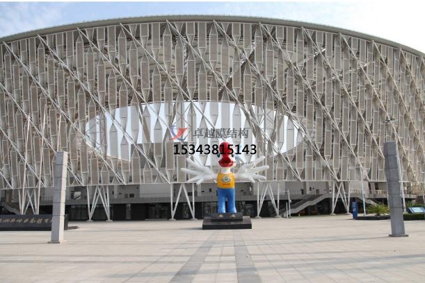 為了完成賦有動感的金屬立面前景作用和高度通透的近景作用,立面膜選用PTFE網(wǎng)格膜,表面積約2萬多m2。