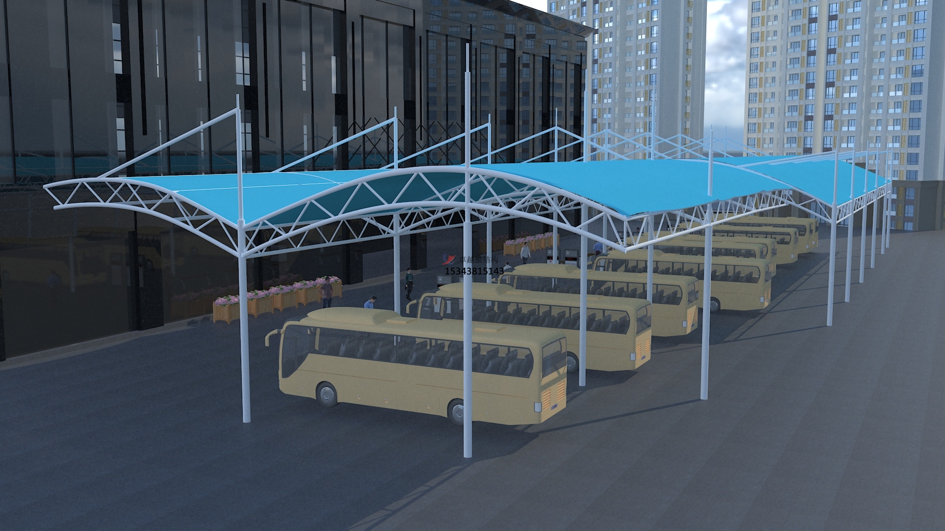 公交大巴膜結(jié)構(gòu)停車(chē)棚效果圖