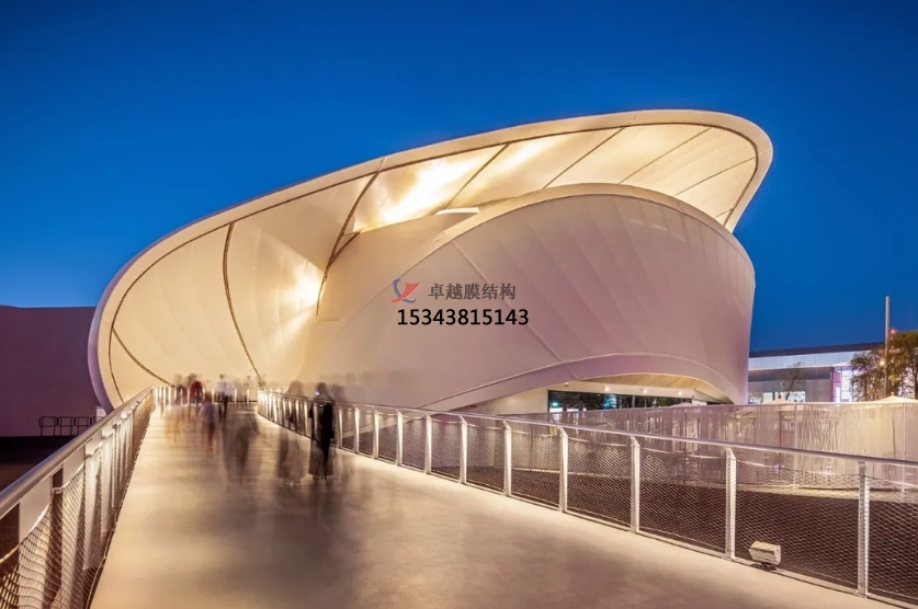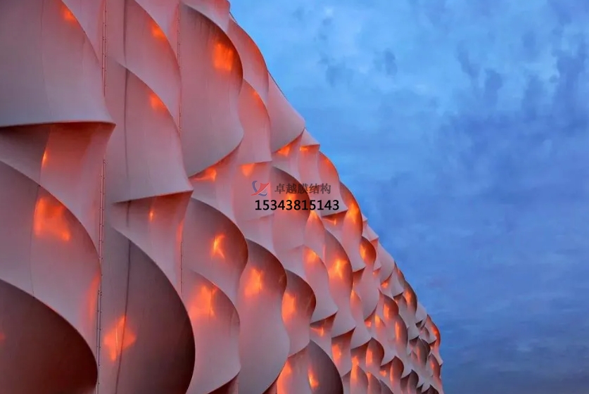 膜結(jié)構(gòu)建筑是21世紀(jì)最具代表性和前景的建筑形式之一,它打破了純線性建筑風(fēng)格的格局,以其獨(dú)特優(yōu)美的曲線形狀, 呈現(xiàn)出柔和的力量美感,同時(shí)賦予設(shè)計(jì)師更多的想象力和創(chuàng)作空間。