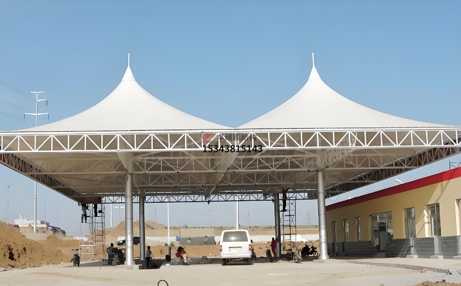 高速公路服務(wù)區(qū)加油站:高速公路服務(wù)區(qū)加油站車流量大,對設(shè)施的耐用性和快速施工要求較高。膜結(jié)構(gòu)頂棚憑借其長使用壽命、便捷施工等優(yōu)勢,能在短時間內(nèi)完成建設(shè),滿足服務(wù)區(qū)快速投入使用的需求。同時,其美觀的造型也能為長途奔波的司乘人員帶來良好的視覺感受,提升服務(wù)區(qū)的整體形象。