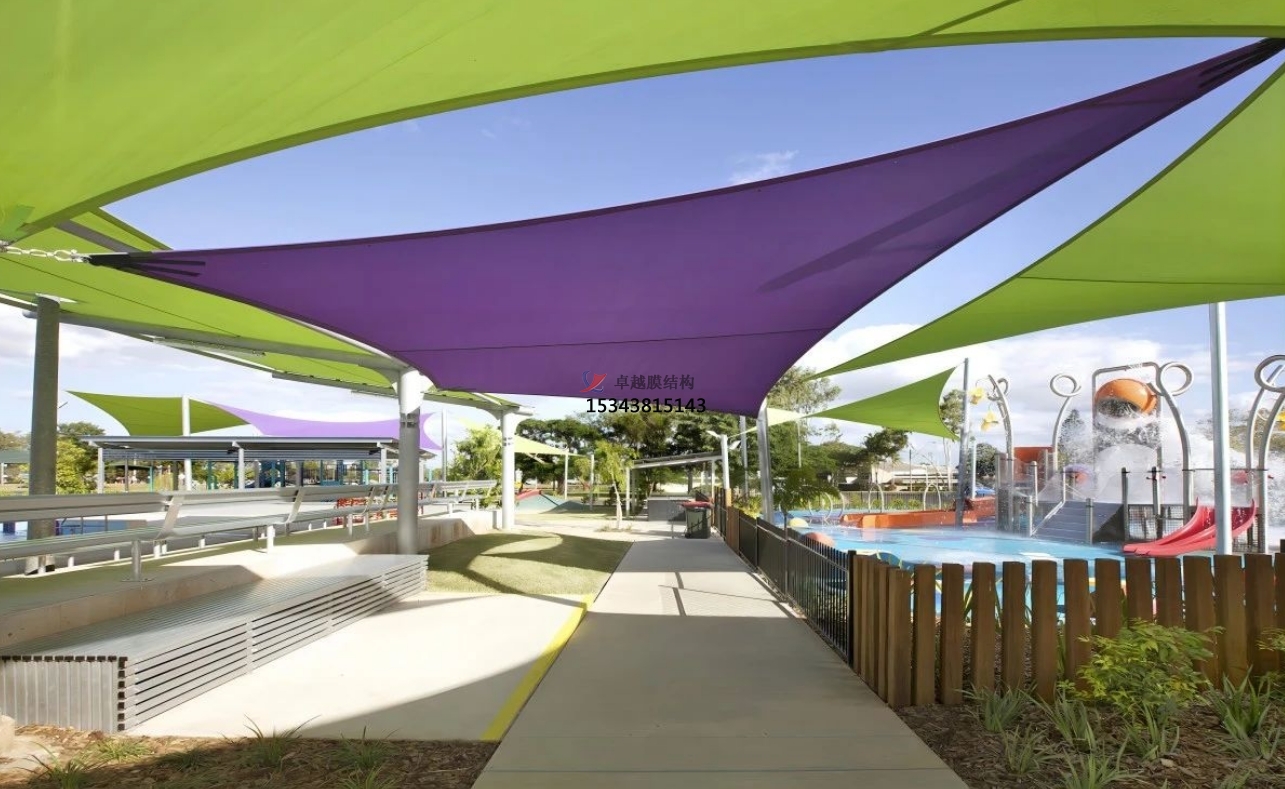 打破傳統(tǒng)設(shè)計(jì)界限,多變幾何型遮陽棚以其獨(dú)特的幾何形態(tài)吸引眼球。無論是圓形、方形、還是不規(guī)則形狀,都能根據(jù)水上樂園的整體風(fēng)格進(jìn)行定制,增添現(xiàn)代感和藝術(shù)氣息。同時(shí),幾何結(jié)構(gòu)的巧妙運(yùn)用,也確保了遮陽效果的最大化。