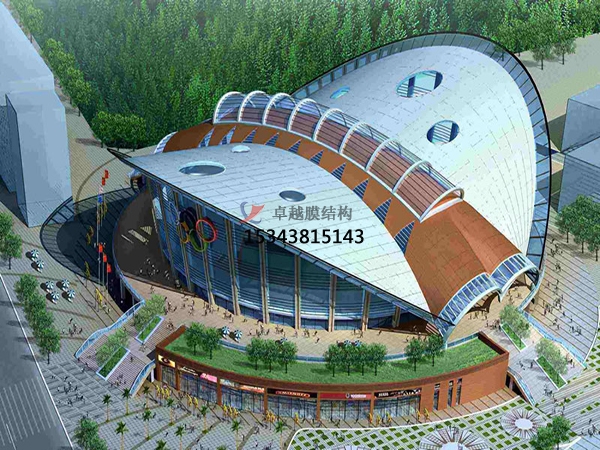 場(chǎng)館看臺(tái)膜結(jié)構(gòu)特點(diǎn):其具有造型美觀、施工簡(jiǎn)便、透光性好、自潔性強(qiáng)、節(jié)能環(huán)保、適應(yīng)性強(qiáng)等特點(diǎn)。膜材料具有優(yōu)異的柔韌性和可塑性,能夠創(chuàng)造出豐富多彩的建筑造型,如貝殼形、弧形、錐形等,為場(chǎng)館增添獨(dú)特的藝術(shù)氛圍。膜結(jié)構(gòu)看臺(tái)的施工過程相對(duì)簡(jiǎn)單,不需要大型機(jī)械設(shè)備和腳手架等輔助工具。裁剪、拼接和安裝都可以在加工廠完成,現(xiàn)場(chǎng)只需進(jìn)行簡(jiǎn)單的張拉和錨固,可有效縮短施工周期。膜材具有良好的透光性,白天陽光可以透過膜材形成漫射光,使膜覆蓋空間內(nèi)達(dá)到和室外幾乎一樣的自然效果,不僅能為觀眾提供舒適的觀賽環(huán)境,還能節(jié)省大量的照明能源。膜材表面光滑,灰塵、污垢等不易附著,在雨水的沖刷下可恢復(fù)其原有的清潔面層與透光性,大大減少了后期的清潔維護(hù)工作量。膜材料本身具有一定的隔熱性能,能有效阻擋太陽輻射熱傳入室內(nèi),降低場(chǎng)館的空調(diào)能耗。同時(shí),其可回收再利用的特性也符合綠色環(huán)保的建筑理念。膜結(jié)構(gòu)看臺(tái)的設(shè)計(jì)可以根據(jù)不同的需求和場(chǎng)景進(jìn)行定制,適應(yīng)各種地形和環(huán)境,如山地、水域和不規(guī)則地形等。