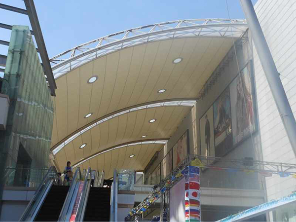 聊城市商場(chǎng)膜結(jié)構(gòu)、商業(yè)街頂蓋膜結(jié)構(gòu)、步行街走廊頂棚、罩棚、遮陽棚、雨棚工程案例