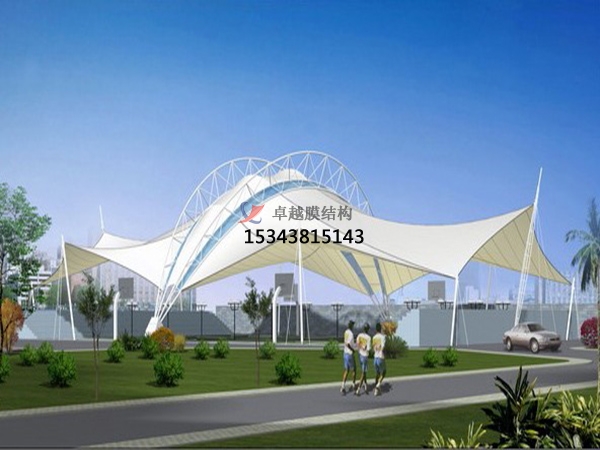 膜結(jié)構(gòu)雨棚是一種全新的建筑結(jié)構(gòu)形式,它集建筑學(xué)、結(jié)構(gòu)力學(xué)、精細(xì)化工與材料科學(xué)、計(jì)算機(jī)技術(shù)等為一體,具有很高技術(shù)含量。其曲面可以隨著建筑師的設(shè)計(jì)需要任意變化,結(jié)合整體環(huán)境,建造出標(biāo)志性的形象工程。