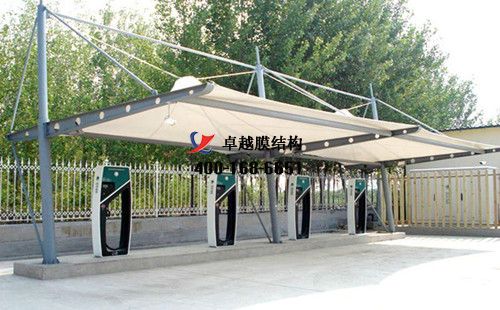 膜結構充電站樁車棚設計、施工項目,效果及簡介如下: