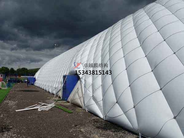 充氣膜體育館是用特殊的建筑膜材做外殼,配備一套智能化的機電設(shè)備在氣膜建筑內(nèi)部提供空氣的正壓,把建筑主體支撐起來的一種建筑結(jié)構(gòu)系統(tǒng)。