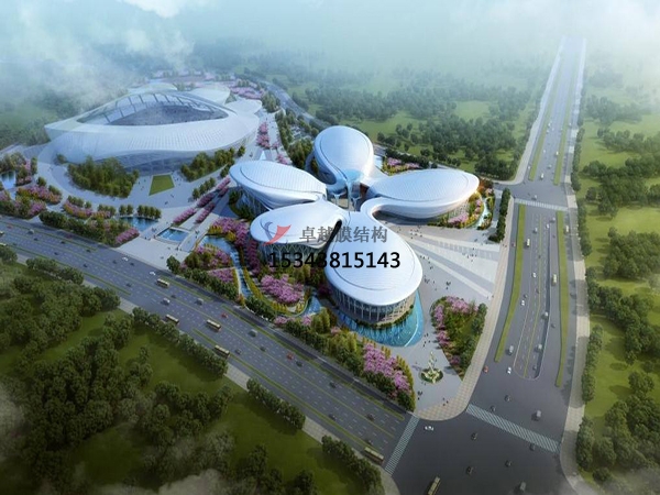 1、膜結(jié)構(gòu)公司建議采用分塊吊裝的方法,就是將膜體按平面位置分為若干作業(yè)塊,每塊膜體同樣采用多點(diǎn)整體吊裝技術(shù),整體吊裝到位。若采用整體提升技術(shù),要求投入的設(shè)備和人員較多,施工準(zhǔn)備期較長(zhǎng)。在整個(gè)安裝過程中要特別注意防止膜體在風(fēng)荷載作用下產(chǎn)生過大的晃動(dòng)。