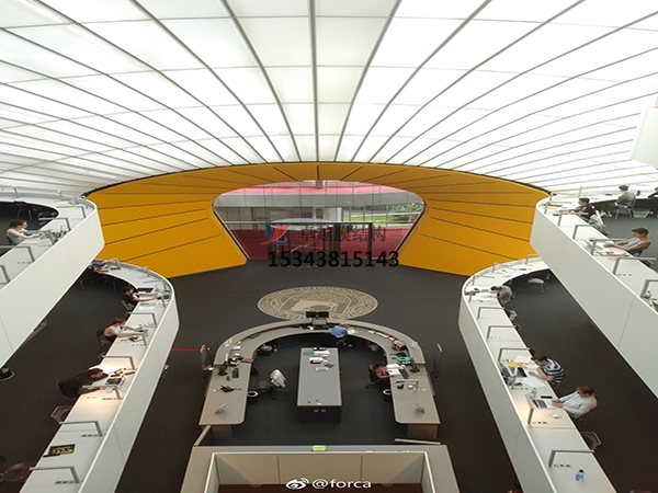 近年來,隨著建筑空間觀念的日益深化以及科學(xué)手段的不斷提高,"回歸自然"、"沐浴自然之溫馨"已是現(xiàn)代建筑環(huán)境學(xué)發(fā)展的主流。室內(nèi)外的視線越來越模糊,出現(xiàn)了許多亦內(nèi)亦外、相互滲透的不定空間,如:大廳裝飾、天井、四季廳、動(dòng)植物園、公園廣場(chǎng)、觀景臺(tái)、舞臺(tái)、體育場(chǎng)館、體育看臺(tái)、文化娛樂場(chǎng)所等。由于膜材的光透性,白天陽光可以透過膜材形成慢射光,使膜覆蓋空間內(nèi)達(dá)到和室外幾乎一樣的自然效果,因此膜結(jié)構(gòu)能創(chuàng)造出與自然環(huán)境相媲美的空間形式。