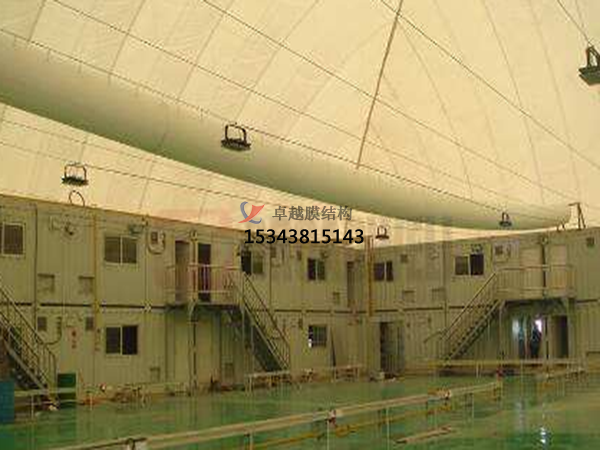 2、嘉峪關(guān)祁連山水泥建材充氣膜結(jié)構(gòu)罩棚施工案例