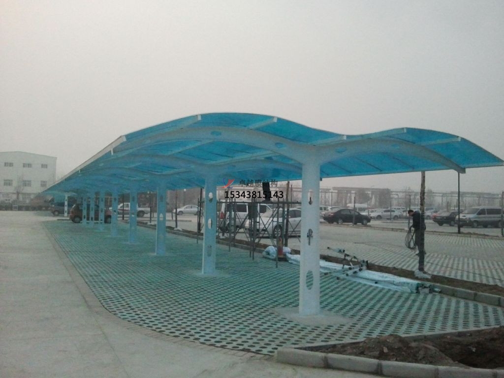 商業(yè)廣場(chǎng)雨棚搭建設(shè)計(jì)特別適合用來(lái)建造城市標(biāo)志性建筑的屋頂,如體育與娛樂(lè)性場(chǎng)館,需有廣告效應(yīng)的商場(chǎng)、餐廳等。城市的交通樞紐是城市命脈的關(guān)鍵性建筑,使用功能要求建筑物各組成單元的標(biāo)志明確。因而近來(lái)年,這類建筑越來(lái)越多采用膜結(jié)構(gòu)。建筑膜材料的使用壽命為 25 年以上。在使用期間,在雪或風(fēng)荷載作用下均能保持材料的力學(xué)形態(tài)穩(wěn)定不變。建成于 1973 年的美國(guó)加州 La Verne 大學(xué)的學(xué)生活動(dòng)中心是已有 23 年歷史的商業(yè)廣場(chǎng)雨棚搭建建筑.跟蹤測(cè)試與材料的加載與加速氣候變化的試驗(yàn),證明它的膜材料的力學(xué)性能與化學(xué)穩(wěn)定性指標(biāo)下降了 20 %至 30 %,但仍可正常使用。膜的表層光滑,具有彈性,大氣中的灰塵、化學(xué)物質(zhì)的微粒極難附著與滲透,經(jīng)雨水的沖刷建筑膜可恢復(fù)其原有的清潔面層與透光性。