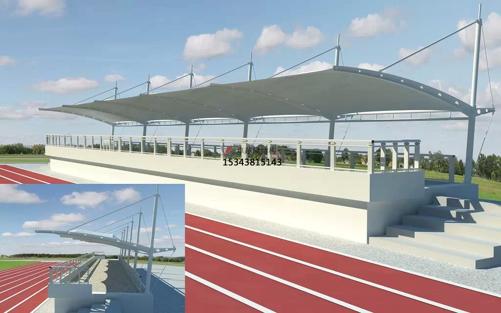 張拉膜看臺(tái)主要用于各類地方體育場(chǎng)主席臺(tái)雨棚,各類學(xué)校體育場(chǎng)看臺(tái)雨棚遮蓋,我公司是國(guó)內(nèi)較早從事大懸挑張拉膜結(jié)構(gòu)看臺(tái)設(shè)計(jì)施工的專業(yè)廠家,下面介紹一下我們?cè)阱ш柨h周邊縣市完工的一些張拉膜看臺(tái)設(shè)計(jì)施工案例,我公司先后在濮陽縣周邊承接了濮陽縣第三中學(xué)膜結(jié)構(gòu)看臺(tái)雨篷/主席臺(tái)/舞臺(tái)安裝雨棚、濮陽縣實(shí)驗(yàn)中學(xué)張拉膜張拉膜看臺(tái)罩棚、濮陽縣教師進(jìn)修學(xué)校張拉膜看臺(tái)遮陽棚等設(shè)計(jì)施工項(xiàng)目,簡(jiǎn)介如下: