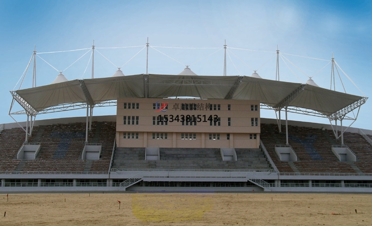 訂制體育場(chǎng)膜結(jié)構(gòu)看臺(tái)具有環(huán)保與安全性能。其可持續(xù)性設(shè)計(jì),通過(guò)透光膜材減少照明能耗,自潔涂層可降低維護(hù)成本。材料可回收,施工過(guò)程減少?gòu)U棄物排放。需通過(guò)結(jié)構(gòu)強(qiáng)度、抗老化、耐風(fēng)壓等多輪測(cè)試,確保50年以上使用壽命。在訂制體育場(chǎng)膜結(jié)構(gòu)看臺(tái)時(shí),要選擇有經(jīng)驗(yàn)、信譽(yù)好的設(shè)計(jì)和施工團(tuán)隊(duì),嚴(yán)格按照相關(guān)規(guī)范和標(biāo)準(zhǔn)進(jìn)行操作,以確??磁_(tái)的質(zhì)量和安全性。