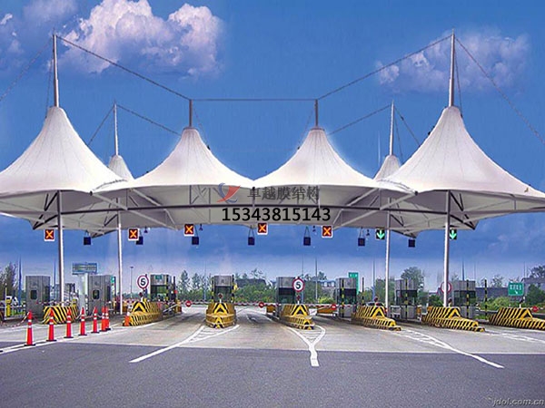 一、造型獨(dú)特,辨識(shí)度高,由于膜材重量輕,適合收費(fèi)站這種大跨度的建筑,而且是采用張力結(jié)構(gòu)所以在造型設(shè)計(jì)上具有很大的優(yōu)勢,可以實(shí)現(xiàn)非常具有藝術(shù)氣息的造型。