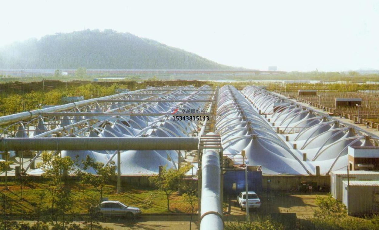 污水池反吊膜技術(shù)是一種利用膜材反吊的原理,將鋼結(jié)構(gòu)在外將膜材懸吊,利用膜材的氣密性特點,將廢氣密封在一個密閉的空間,進而將凈化后的廢氣排出池外,達到排放標(biāo)準(zhǔn)的技術(shù)。它采用以鋼構(gòu)為支撐,膜材反吊覆蓋的膜結(jié)構(gòu)形式,即抗腐蝕能力很強的新型環(huán)保膜材將廢氣量住,而鋼結(jié)構(gòu)則在外面將膜懸吊起來。