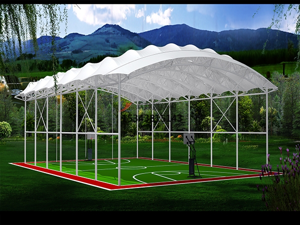 3、 攀枝花娃哈哈集團(tuán)攀枝花工業(yè)園區(qū)籃球場(chǎng)膜結(jié)構(gòu)罩棚施工案例