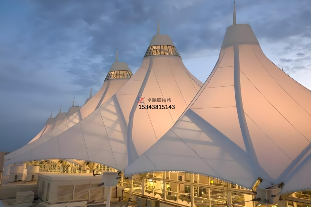 從功用角度來看,膜結(jié)構(gòu)的許多特性使其非常合適機場環(huán)境。杰出的透光性是膜結(jié)構(gòu)的一大亮點。例如,一些膜資料對天然光的透射率可達 25%,透射光在修建內(nèi)部發(fā)生均勻的漫射光,無陰影、無眩光,具有杰出的顯色性。這意味著在白天,機場內(nèi)部可以充分利用天然采光,削減人工照明的運用,然后降低能耗,完成節(jié)能環(huán)保。一起,均勻柔軟的光線也為旅客提供了愈加舒適的視覺環(huán)境,有利于提高旅客的候機體會。膜結(jié)構(gòu)的自潔性能也非常超卓。像 PTFE 膜材和通過特殊外表處理的 PVC 膜材,雨水會在其外表聚成水珠流下,使膜材外表得到天然清洗,無需大量人工維護,就能始終保持整齊漂亮,大大降低了后期維護本錢。