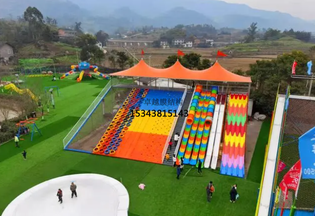信陽(yáng)彩虹滑道游樂(lè)設(shè)備紅色遮陽(yáng)棚結(jié)構(gòu)設(shè)計(jì)生產(chǎn)