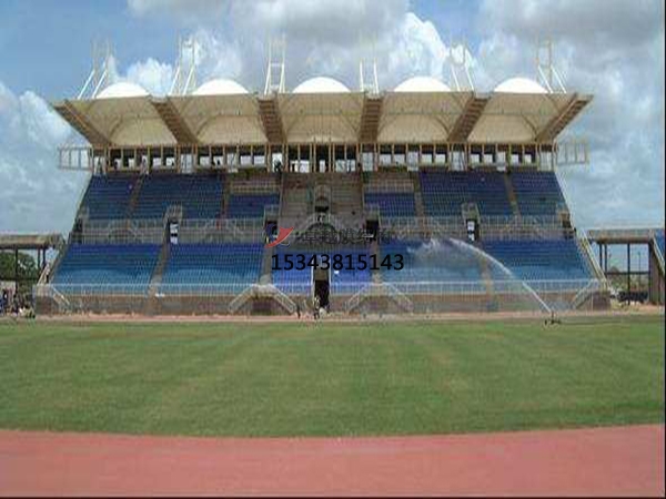 ?。?)對邊角及有褶皺的區(qū)域進行局部張拉調節(jié),更終固定膜面及節(jié)點,并完成雨水系統(tǒng)安裝及防水覆蓋。