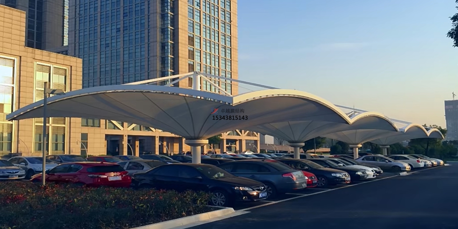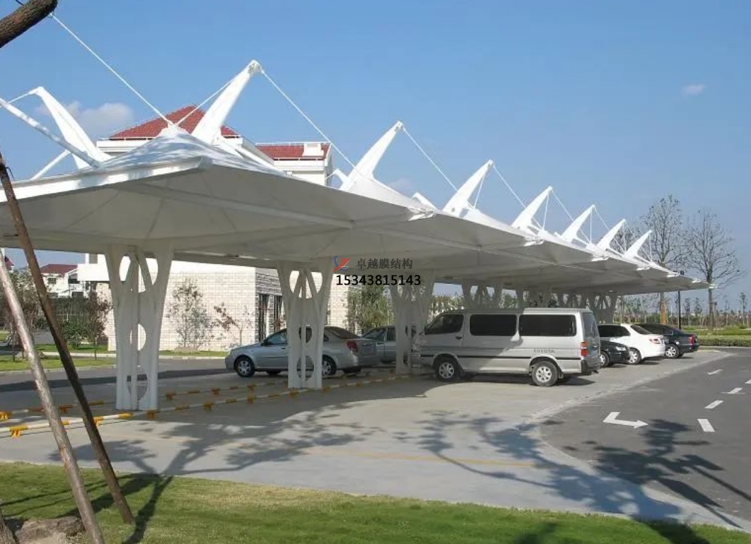 雙挑膜結構車棚錯落有致地排列著,不僅為車輛提供了庇護,還宛如一件件精美的藝術品,與周圍的綠化景觀、建筑風格相得益彰,極大地提升了整個區(qū)域的環(huán)境美感和品質檔次。