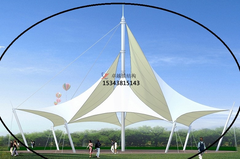 景觀園林膜結(jié)構(gòu)應(yīng)用場景:應(yīng)用場景有城市公共空間、生態(tài)與藝術(shù)重合、休閑與商業(yè)區(qū)域。城市公共空間,德國柏林花形展館采用充氣膜技術(shù),通過白色PVC膜模擬巨型花朵形態(tài),兼具遮陽、通風(fēng)及照明功能,模塊化設(shè)計可獨立或組合使用,成為會展公園的標(biāo)志性景觀,上海世博軸陽光谷以喇叭花造型膜結(jié)構(gòu)為核心,結(jié)合鋼架與水波張拉膜,形成兼具剛?cè)崽匦缘某L景觀帶。生態(tài)與藝術(shù)融合,法國盧瓦爾河畔肖蒙國際花園節(jié)的紅色花形景觀膜,通過彩膜與陶罐系統(tǒng)結(jié)合,既節(jié)水又象征生態(tài)循環(huán),具有教育與警示意義。荷蘭Leidsche Rijn公交站采用牽?;ㄔ煨湍そY(jié)構(gòu),排列整齊的形態(tài)與法拉利TX30膜材結(jié)合,成為兼具功能性與地標(biāo)性的城市設(shè)施。休閑與商業(yè)區(qū)域,景觀棚膜結(jié)構(gòu)廣泛應(yīng)用于步行街、公園綠地和景區(qū),提供遮陽避雨空間的同時,通過夜間燈光營造夢幻效果,增強商業(yè)吸引力。