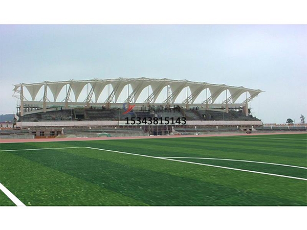 膜結構車棚膜結構所用的膜材料為具有、阻燃、耐久、自潔等特性的復合材料,一般由基布和涂層二部分組成。基布主要采用聚脂纖維或玻璃纖維絲編織而成,有平織和絞等多種編織方法,不同的膜結構車蓬編織方法影響著膜材料的經(jīng)緯向力學性能指標,膜的抗拉強度和抗撕裂強度等;涂層材料主要有聚四氟乙烯和聚氯乙烯,在一定程度上提高了膜材料各項強度指標,為提高膜材料的耐久、自潔等特性,表面往往有一層氟涂層或硅涂層,膜材料的耐火、耐久及防水、自潔等性能,決定著膜材料的物理特性。