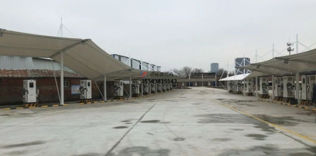 加氣站膜結(jié)構(gòu)雨棚是一種現(xiàn)代化的建筑形式,它采用高強(qiáng)度、高耐久性的膜材料,通過一定的技術(shù)手段和結(jié)構(gòu)設(shè)計(jì),形成一種具有獨(dú)特美學(xué)效果和實(shí)用功能的建筑形式。這種結(jié)構(gòu)形式在加氣站的應(yīng)用中,不僅可以提供寬敞、明亮的加油環(huán)境,還能有效地抵御各種惡劣天氣,提高顧客的舒適度和安全性。