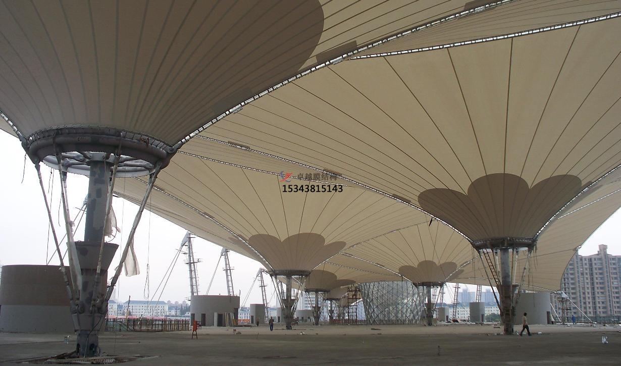 更后是美觀:因?yàn)槟そY(jié)構(gòu)景觀膜材料具有透光性,實(shí)際結(jié)構(gòu)中可以清楚地看見焊縫,所以裁剪縫的布置一定要規(guī)則、合理,更好能形成一些漂亮的圖案以增加膜結(jié)構(gòu)的美感。如果膜表面設(shè)置有壓索或脊索,那么更好使裁剪縫與壓索或脊索重合,使索不至于打亂焊縫的圖案布置。