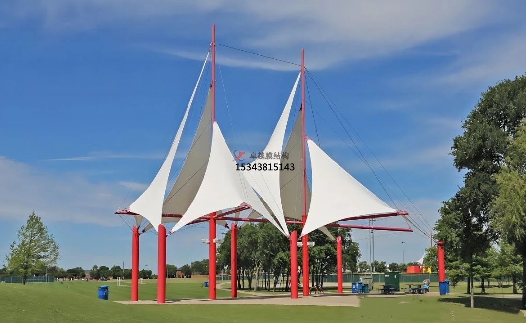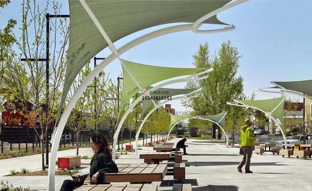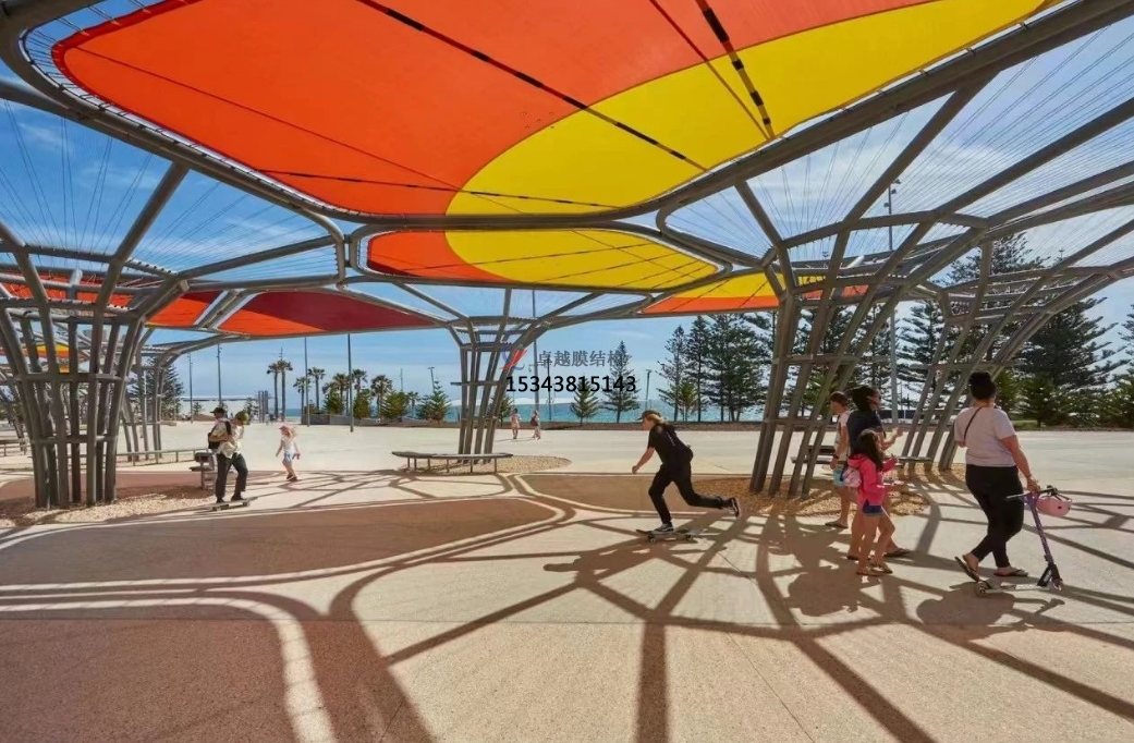 未來的景觀棚膜結(jié)構(gòu)將不再僅僅局限于單一的遮陽避雨功能,而是會朝著多功能融合的方向發(fā)展。比如,在景觀棚內(nèi)集成光伏發(fā)電系統(tǒng),將太陽能轉(zhuǎn)化為電能,實(shí)現(xiàn)能源的自給自足;或者結(jié)合聲學(xué)設(shè)計(jì),使其具備良好的隔音效果,可用于舉辦小型音樂會、演講等活動;還可以與水幕景觀、噴泉等水景元素相結(jié)合,打造出更加豐富多彩的戶外體驗(yàn)空間。