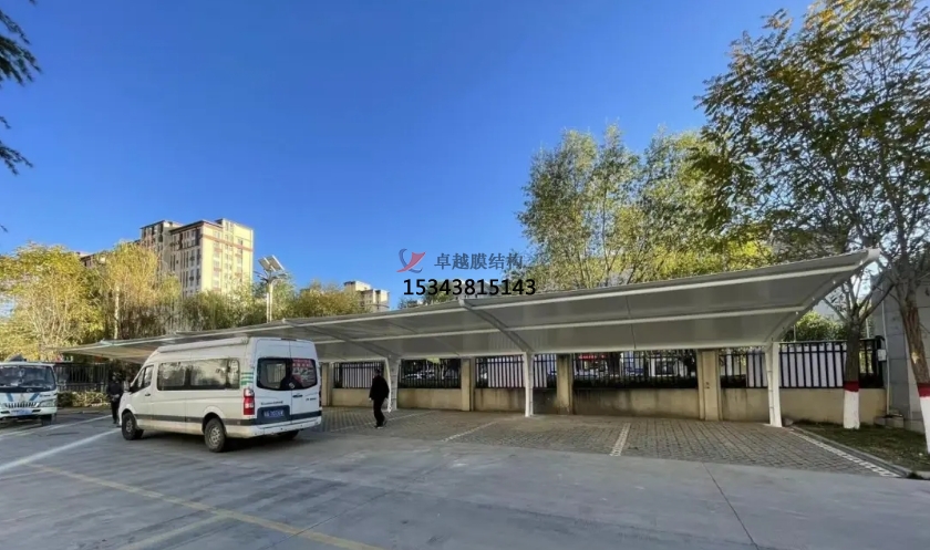 除了停車(chē)功能外,7字型膜結(jié)構(gòu)車(chē)棚的一側(cè)可以與建筑物相連,形成一個(gè)過(guò)渡空間。這個(gè)過(guò)渡空間可以有多種用途,比如作為行人的遮雨棚、自行車(chē)停放處,或者設(shè)置為休息區(qū)。這種多功能的設(shè)計(jì),為人們的生活和使用帶來(lái)了更多的便利,提升了整個(gè)區(qū)域的實(shí)用性。